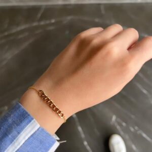 _دست ساز و ساخته شده از طلای 18 عیار (750) _ابعاد حدودی پلاک : 1cm x 1cm _وزن دستبند : 0.880 گرم _طول حدودی دستبند:17/5 سانتی متر(مناسب برای دورمچ 16 تا17سانتی متر) _قابل ساخت و سفارش با وزن و ضخامت بیشتر( به صورت سفارشی)